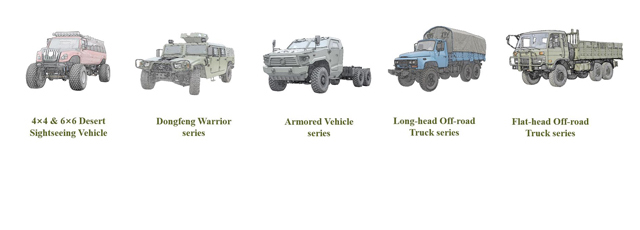 我们的产品包含民用4×4、6×6、8×8越野运输车、越野工程车、越野房车、沙漠旅游观光车和军用突击车、军用装甲车等...
