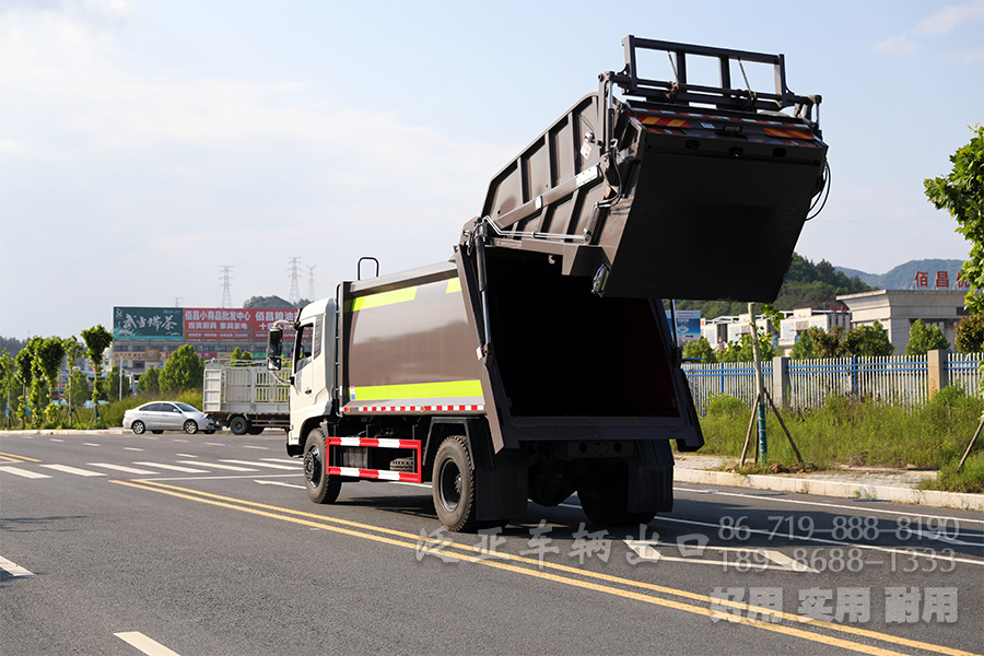 今天我们重点介绍一下东风4x2 14立方压缩式垃圾车,压缩式垃圾是专门用来清理运输生活垃圾以及其它的可以压缩垃圾的运输车辆,由于生活垃圾及其他的可压缩式垃圾扬起的灰尘小,所以这款车辆装填口比较低,安全又省力,同时可使用操作面板控制挂臂的升降。