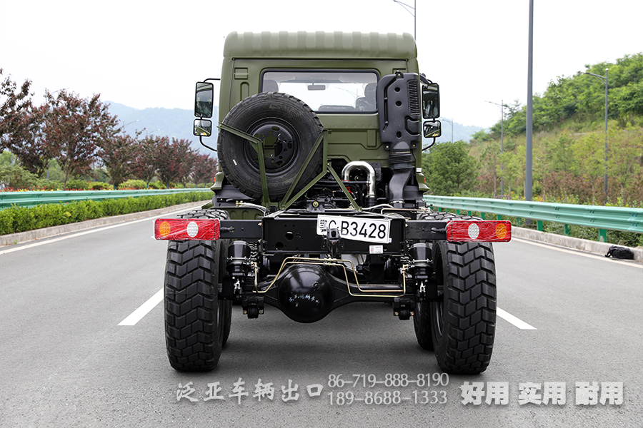 东风新款六驱越野型专用底盘,是一款好用、耐用、实用的底盘。整体造型端正美观,军绿色的外观上装配黑色线条、板块修饰,给人一种肃穆典雅的感觉,宛如一位勇猛的”战士”。