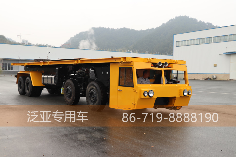 8×4低平板运输车,该车用于特殊路况运输货物使用,如港口,物流。左右带有爬梯,方便上下,可装载集装箱,汽车等大型货物,最多可承载22T货物